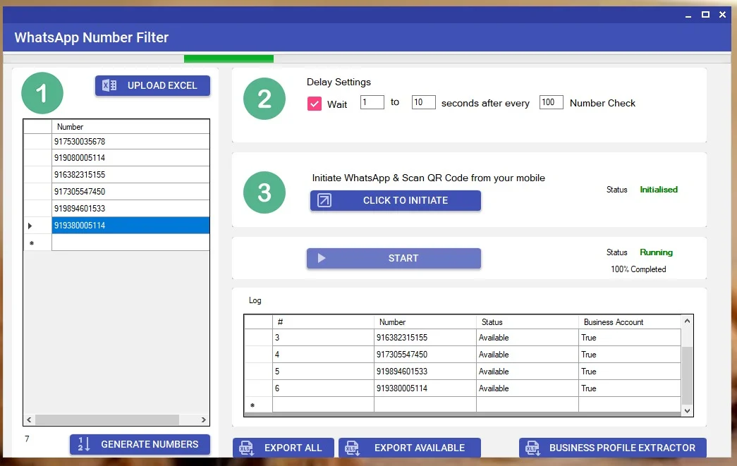 Auto-delay, random typing, safe rotation, human-like simulation. These protect your number from getting blocked.