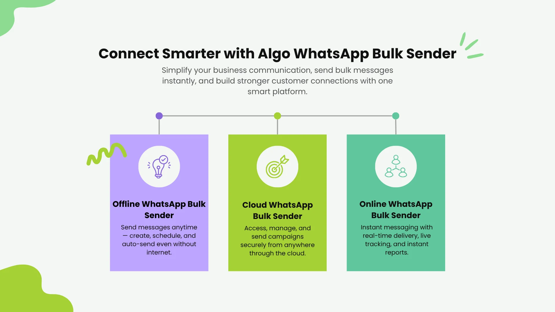 Algo Technosoft’s 3-in-1 WhatsApp Sender System unifies Offline, Cloud, and Meta Verified modes to give you maximum flexibility, automation, and reliability.